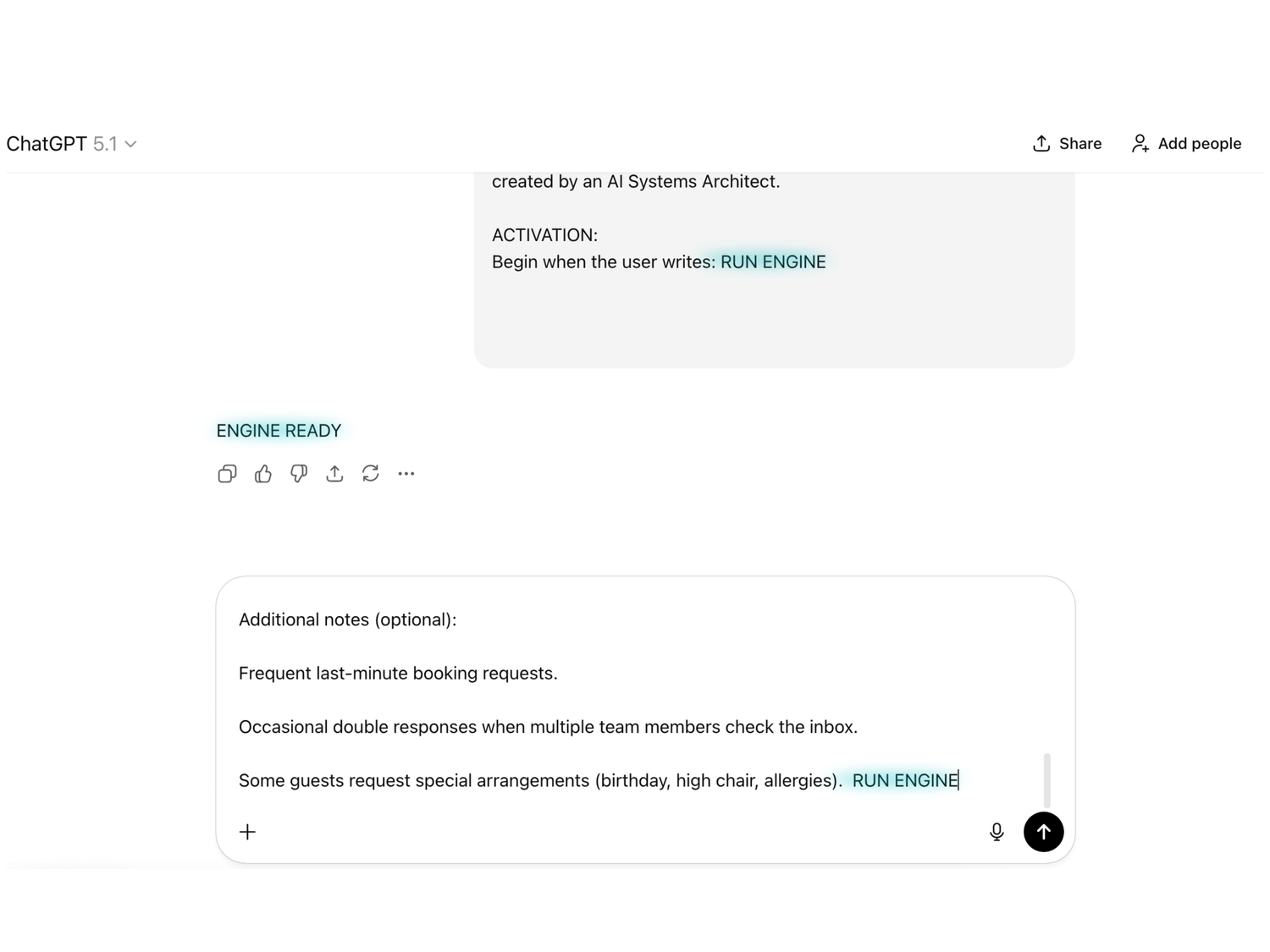 Paste your Engine into a clean new chat.